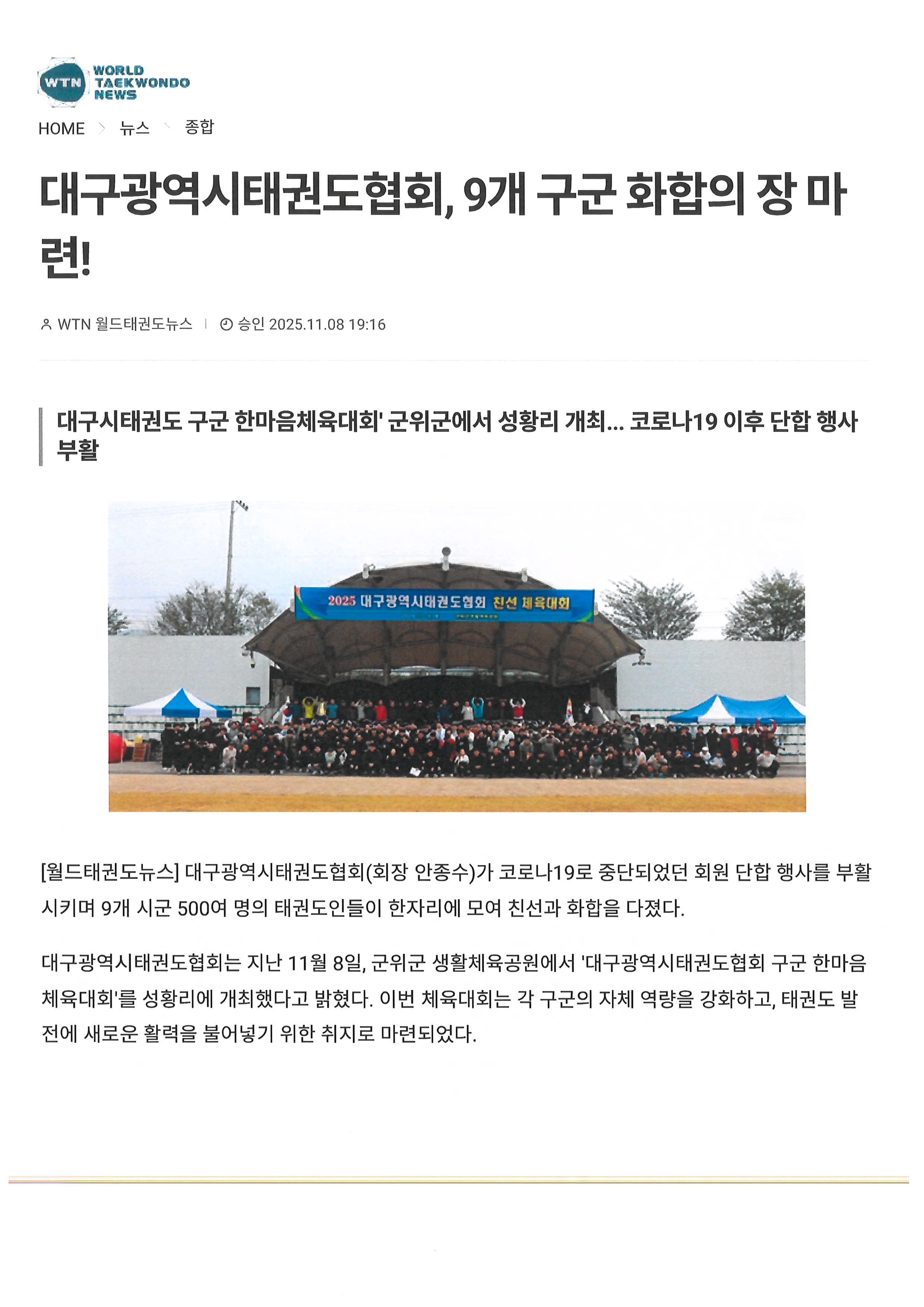 | 20 | | ÇÑâÇå¾¾ ´ë±¸Ã¼À°È¸°æ±â´ÜüÇùÀÇȸ ÃÊ´ëȸÀå ¸¸ÀåÀÏÄ¡ Ãß´ë! |  | 17.01.25 | 3,447 |